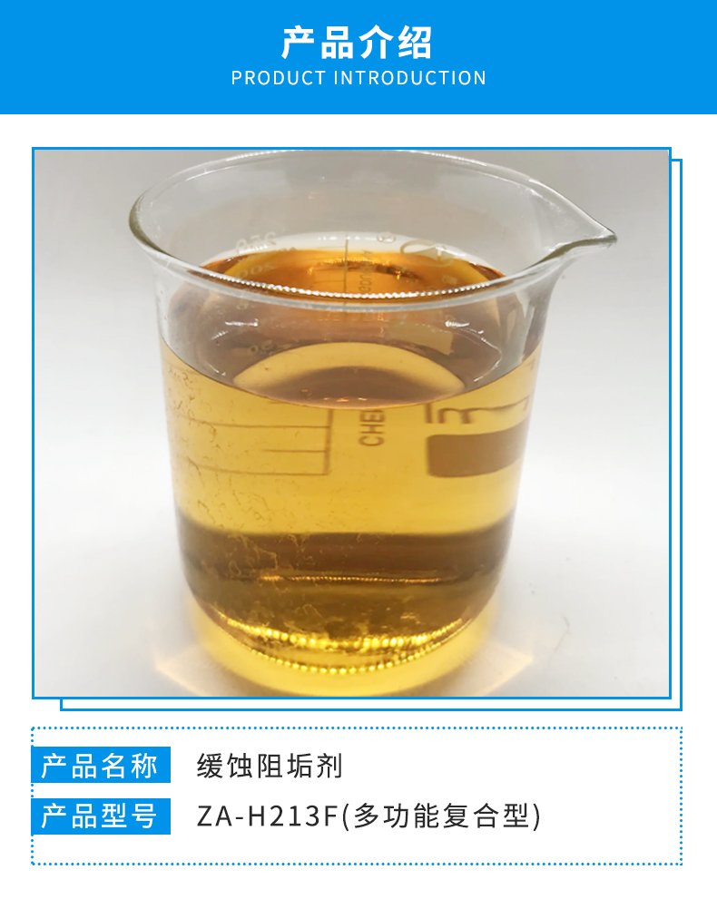 ZA-H213A緩蝕阻垢劑是我公司在總結(jié)日本栗田公司生產(chǎn)的S113性能特點(diǎn)的基礎(chǔ)上進(jìn)一步研制開(kāi)發(fā)的新型系列產(chǎn)品。ZA-H213A產(chǎn)品,根據(jù)分子的特性基團(tuán)在水中大發(fā)揮了分散、螯合晶格歪曲的作用,將緩蝕阻垢性能提高了兩倍,在生產(chǎn)過(guò)程中融入了能增強(qiáng)分子群正負(fù)電荷推力的特性基團(tuán)。從而又增強(qiáng)了該藥劑的耐溫性能。ZA-H213A產(chǎn)品連年被中石化、電力系統(tǒng)、冶金部認(rèn)定為產(chǎn)品,在阻磷酸鈣方面明顯優(yōu)于傳統(tǒng)生產(chǎn)的國(guó)內(nèi)外同類(lèi)產(chǎn)品。阻碳酸鈣也有了不同程度的增加,綜合指標(biāo)超越了國(guó)內(nèi)外同類(lèi)產(chǎn)品。ZA-H213A緩蝕阻垢劑是以丙烯酸及其多酯類(lèi)多元共聚物、有機(jī)膦、銅緩蝕劑等多種原料正規(guī)工藝制成,在循環(huán)冷卻水系統(tǒng)中可有效地防止各種垢類(lèi)的形成,對(duì)防止磷酸鈣的形成有特效,在高溫度和堿性條件下有很好的阻垢作用。經(jīng)專(zhuān)門(mén)檢測(cè)部門(mén)檢測(cè)和眾多用戶(hù)使用證明。ZA-H213A阻垢效果可達(dá)95.8%以上。由于阻垢效果是在高硬度、高堿度、高濃縮倍數(shù)下達(dá)到的,在正常運(yùn)行時(shí),濃縮倍數(shù)可達(dá)3.0-5.0,突破了水處理行業(yè)2.0的。向國(guó)際水準(zhǔn)又邁進(jìn)了一步!給我國(guó)循環(huán)冷卻水設(shè)備壽命延長(zhǎng)了2倍,節(jié)省了幾倍的水資源。綜合效益有了很大提高,是目前國(guó)內(nèi)理想的新型緩蝕阻垢劑。